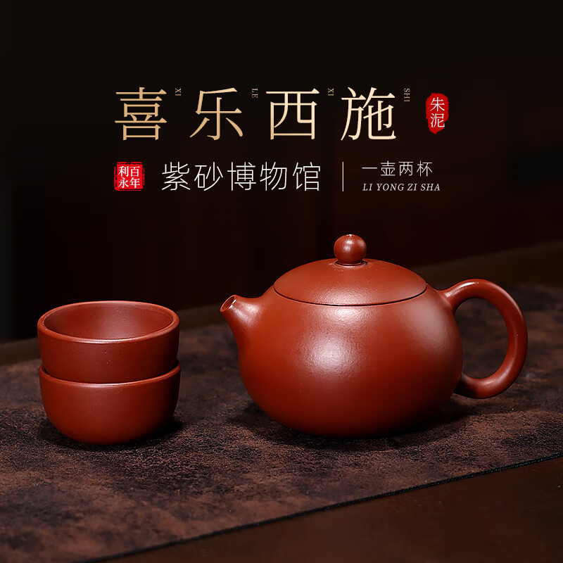 百年利永宜兴紫砂壶纯手工原矿朱泥西施喜乐一壶两杯功夫茶具送长辈礼物 西施·喜乐 -朱泥 220ml