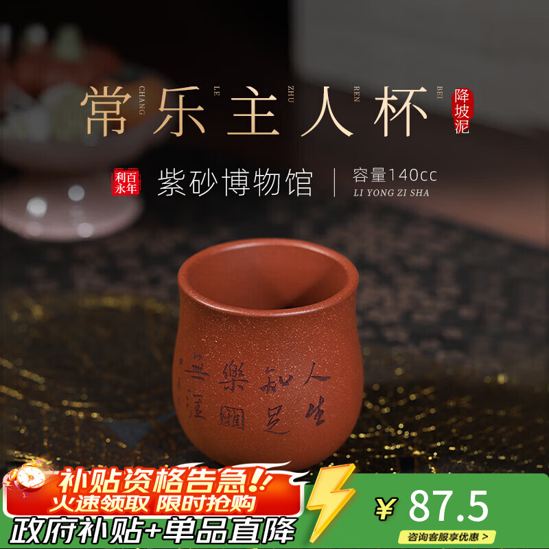 百年利永宜兴纯手工紫砂茶杯原矿降坡泥常乐主人专用功夫茶具泡茶品茗个 常乐主人杯 140ml 1只
