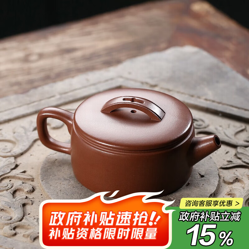 京东京造 宜兴紫砂壶手工【原矿紫泥】煮茶泡茶壶茶具 明炉壶 170ml礼盒装