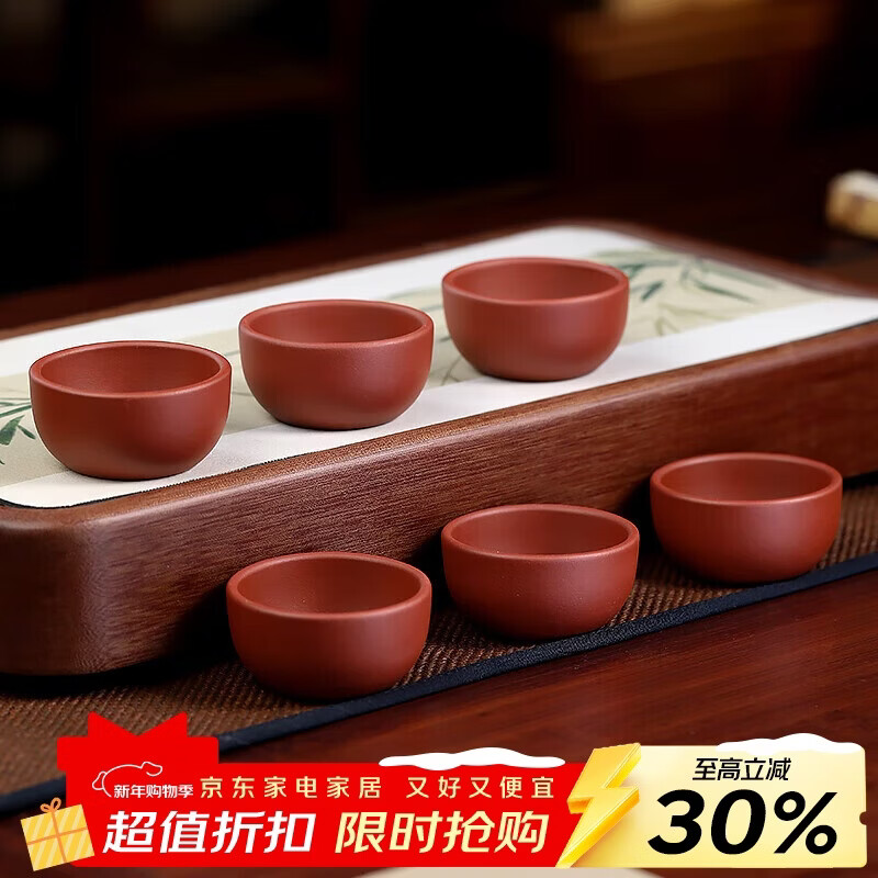 百年利永宜兴紫砂品茗杯原矿紫泥主人杯功夫茶具配件泡茶小杯子茶碗6只装