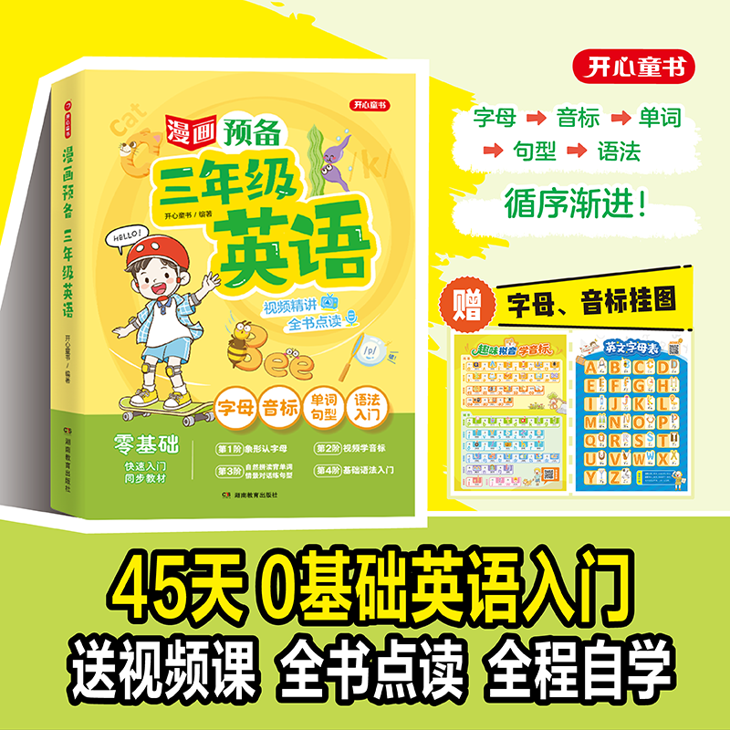 开心漫画预备三年级英语覆盖人教译林各版本一二三年级上下册新教材2025幼小衔接英语零基础早入门启蒙扫码点读发声书同步练习 漫画预备三年级英语 无规格