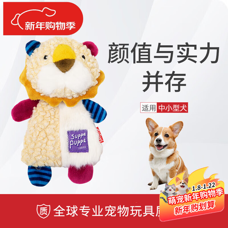 贵为(GiGwi)响纸狮子两种发声毛绒狗狗玩具耐咬解闷幼犬中小型犬宠物玩具