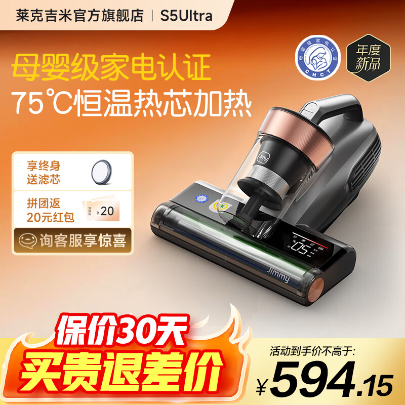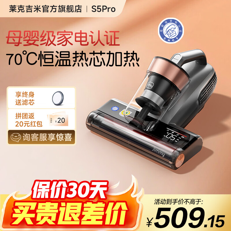 莱克吉米(JIMMY)【15%补贴】S5pro智能母婴加热杀菌除湿家用床上大吸力猫毛大功率吸尘器床宝手持除螨仪 【550W大功率】S5pro