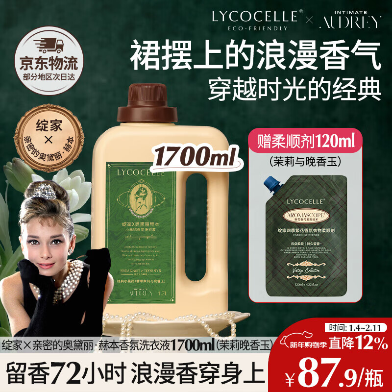绽家X亲密的奥黛丽·赫本联名款香氛洗衣液家用持久留香护色除菌除螨 【茉莉与晚香玉】 1.7L*1瓶