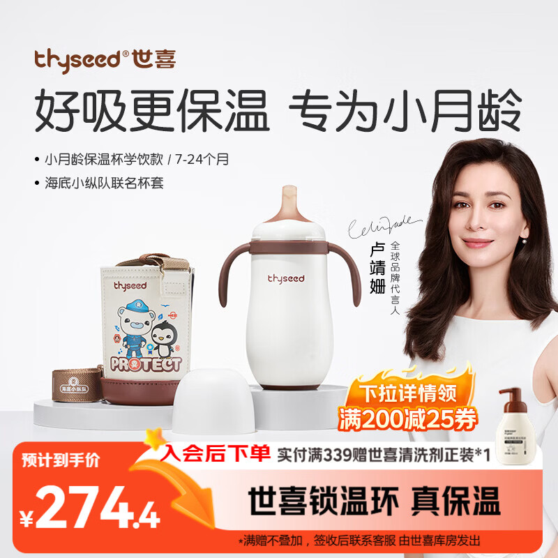 世喜婴儿保温杯幼儿小月龄316L不锈钢钢海底小纵队联名款学饮杯幼儿园
