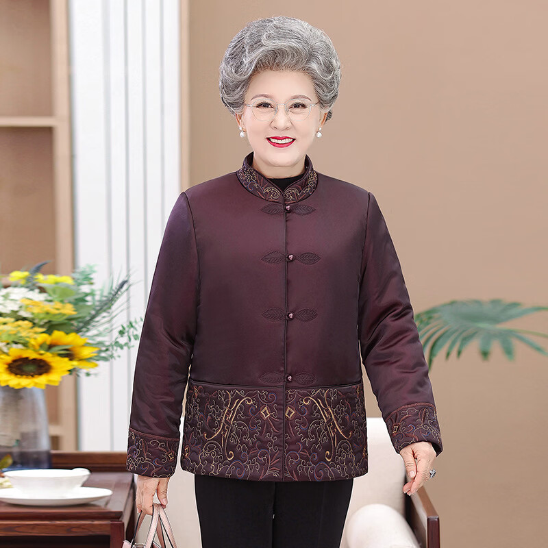 【孝心甄选】奶奶棉衣加棉加厚中老年女唐装棉袄妈冬季老太太衣服 紫色加棉 2XL 建议100-120斤