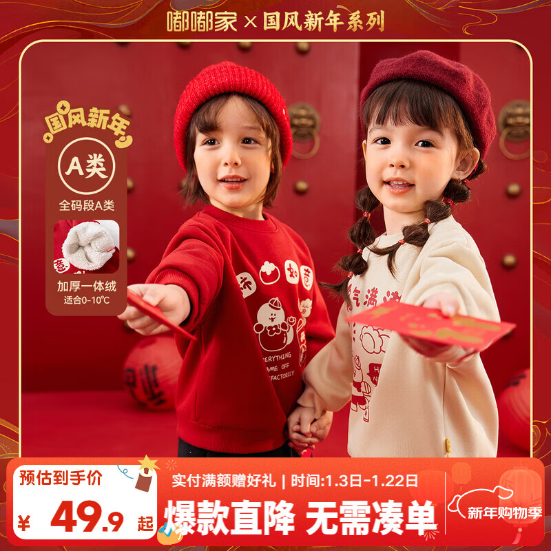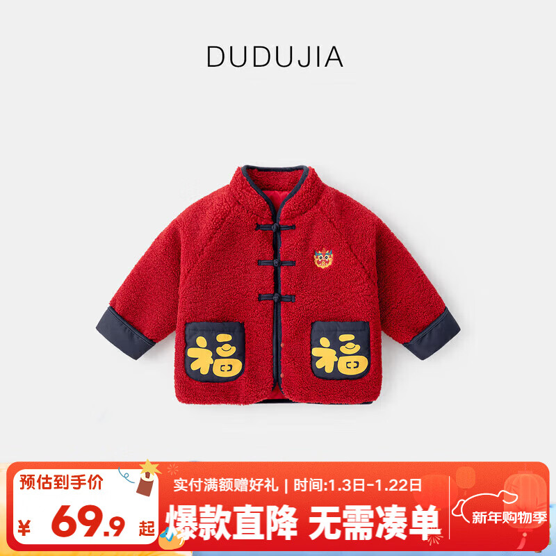 嘟嘟家嘟嘟家拜年服加绒加厚儿童卫衣新年装男童唐装女童裙子过年服冬 大红色 90 90