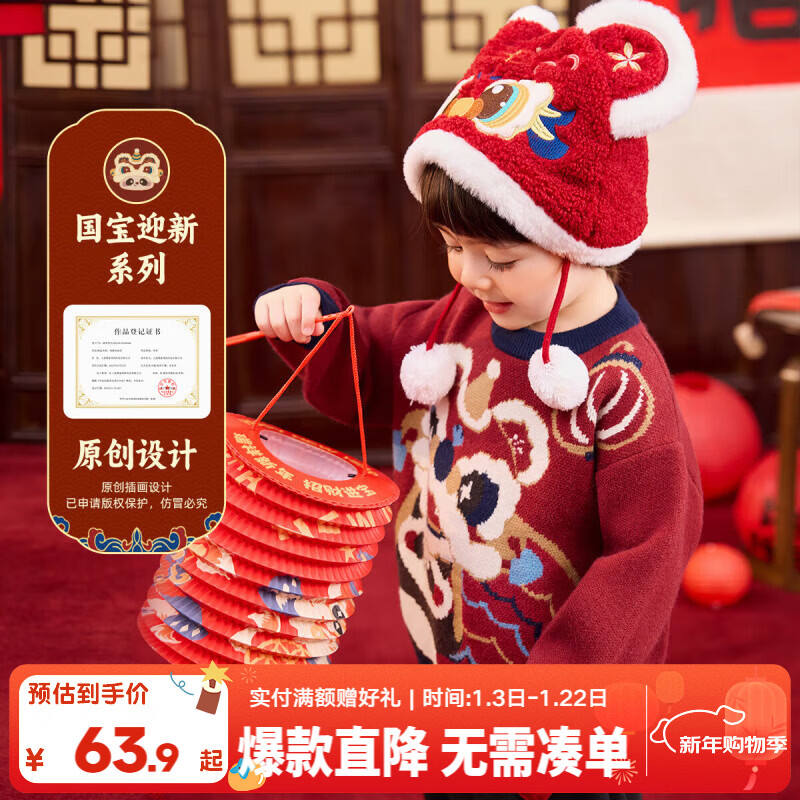 嘟嘟家儿童新年唐装男童红色中国风拜年服女童毛衣宝宝演出服冬季 红色 90