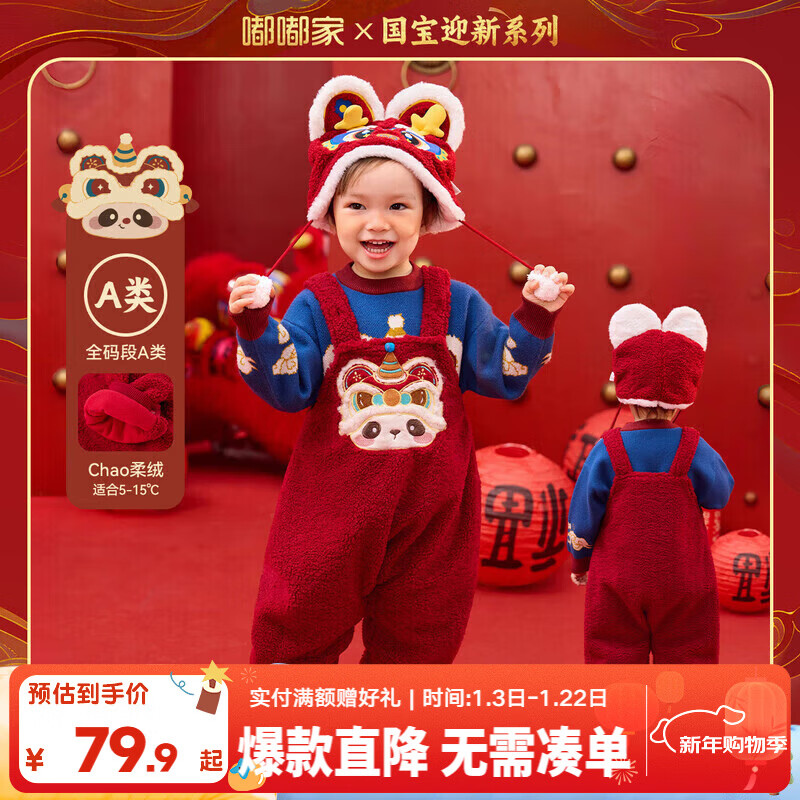 嘟嘟家宝宝周岁礼服儿童新年红色加绒背带裤男童保暖拜年服女童冬季唐装 红色 90