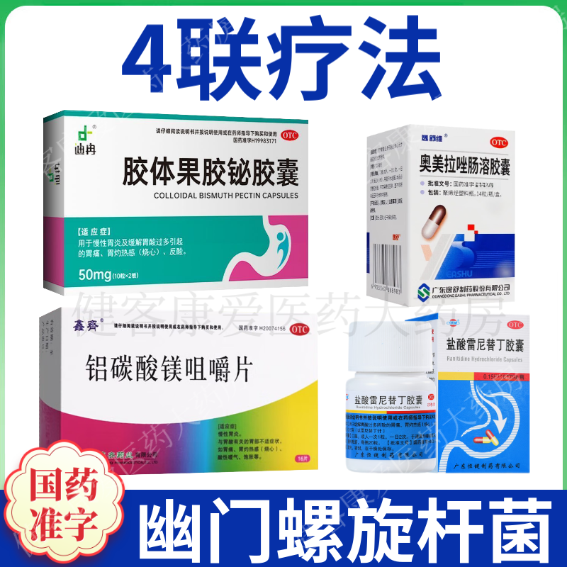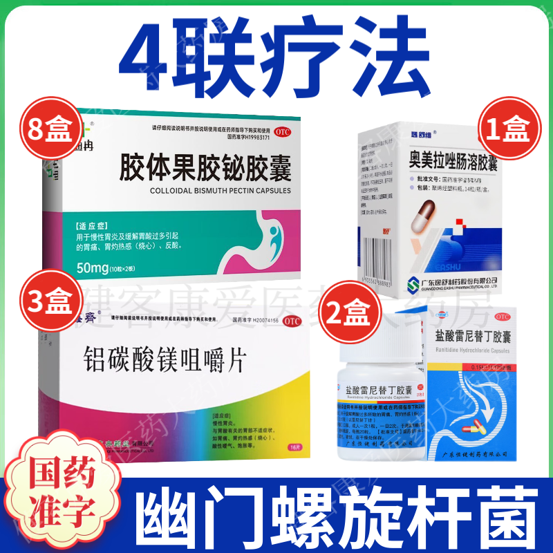 幽门螺旋杆菌四联药 四联疗法 灭杀幽门螺杆菌胶体果胶铋胶囊胃炎胃药胃酸反酸烧心 4盒【幽门螺旋杆菌四联药】