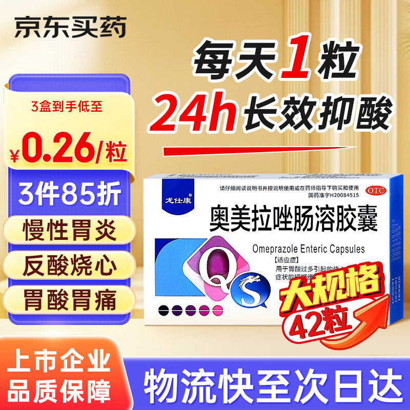 龙仕康 奥美拉唑肠溶胶囊非镁肠溶片42粒奥美拉挫幽门螺旋杆菌四联治疗药胃胀反酸烧心抑制胃酸肠胃消化用药