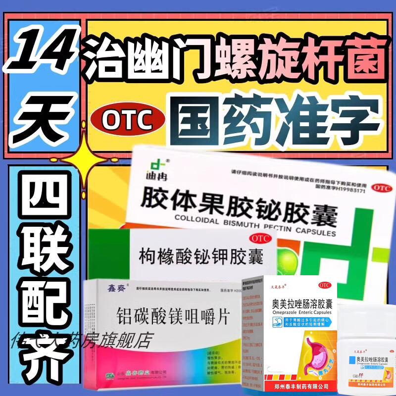 2025【幽门螺旋杆菌四联药】全新疗法去除口气胃痛烧心灼热反酸药新疗法胶体果胶铋胶囊口药治臭疗程药 【标准四联】14盒(14天疗程-正品保证)