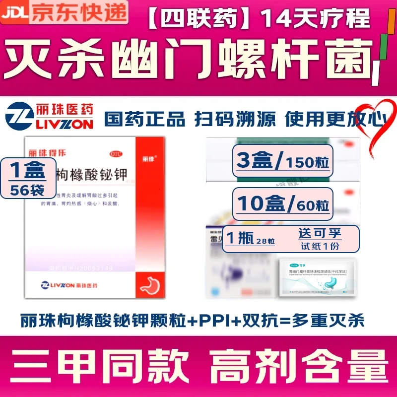 【杀幽门螺旋杆菌可组四联药】2025新疗法反酸胃炎疗程组合装14天胶体果胶铋胶囊胃痛烧心疗效药专用药 【重度阳性】27盒14天-28天疗程【京东仓发货】