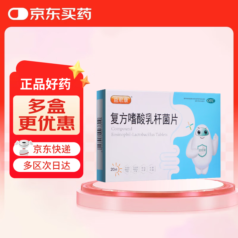 益君康 复方嗜酸乳杆菌片 0.5g*20片/盒 益生菌儿童 幽门螺旋杆菌用药 四联活菌片 拉肚子药腹泻便秘