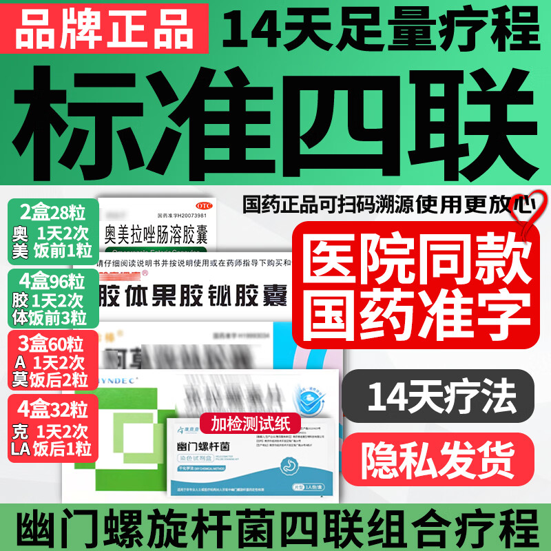 幽门螺杆菌四联药治疗新疗法】胶体果胶铋胶囊胃炎胃痛烧心反酸可组4联三联药治口臭口气重嘴巴臭药 2盒 四联药幽门螺旋杆菌14天量 4款药