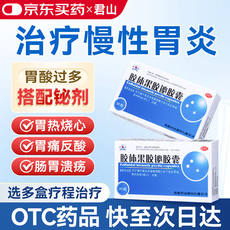 胶体果胶铋胶囊20粒胃药胃病慢性胃炎反酸胃灼热配奥美拉唑幽门螺旋杆菌四联疗法果胶铋京东大药房铋剂
