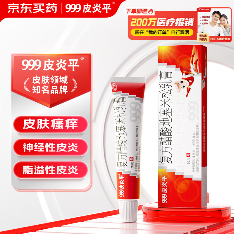 999三九皮炎平复方醋酸地塞米松乳膏 30g:22.5mg 30g/支 神经性皮炎 接触性皮炎 脂溢性皮炎 慢性湿疹 皮肤瘙痒