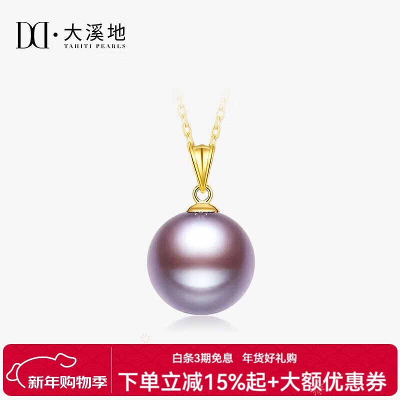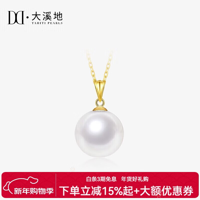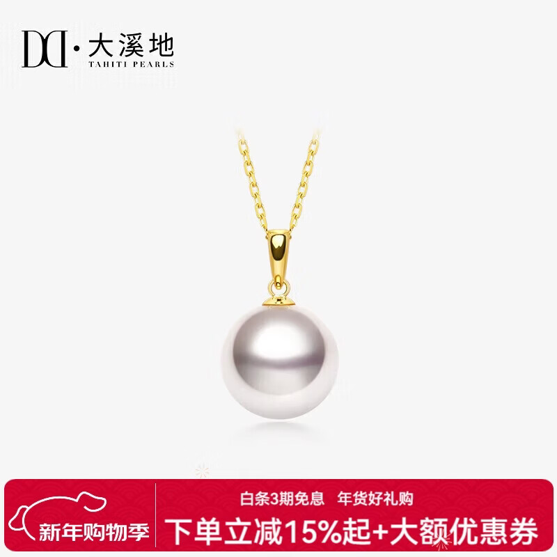 大溪地18K金爱迪生珍珠吊坠 10-11mm强光淡水珍珠项链新年礼物送女生