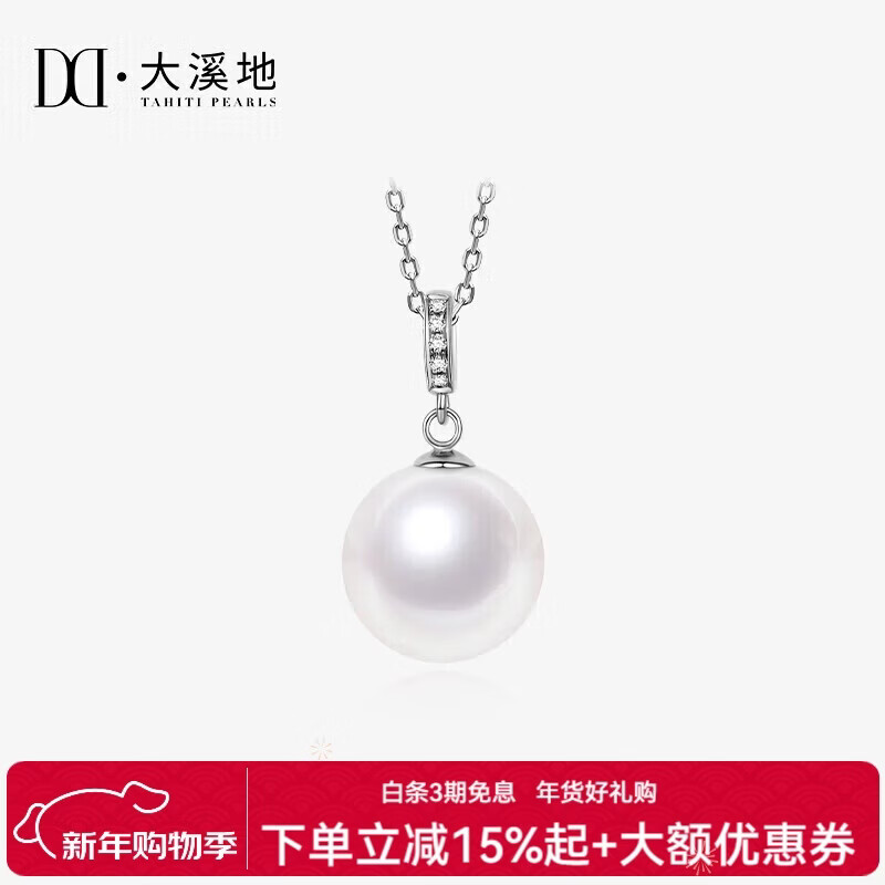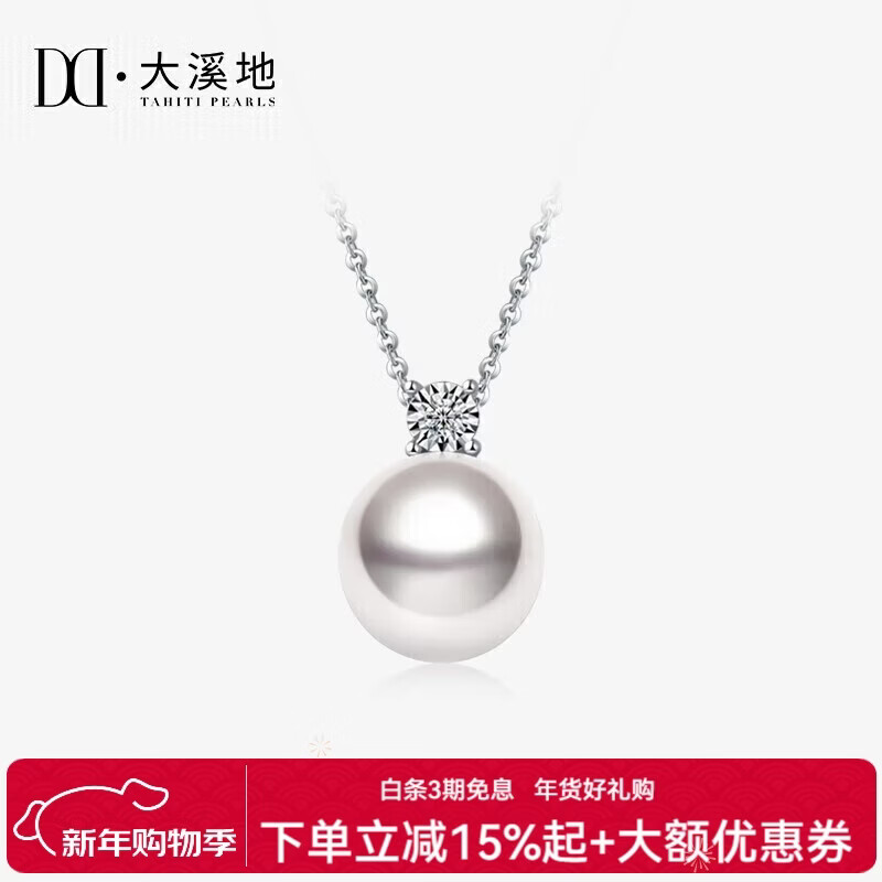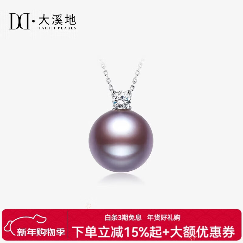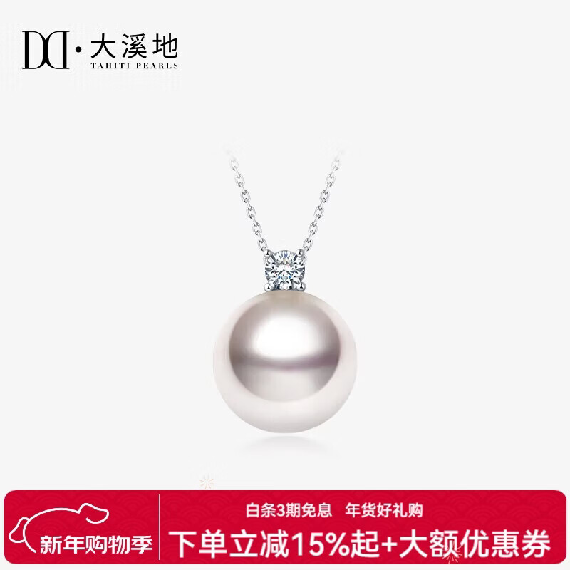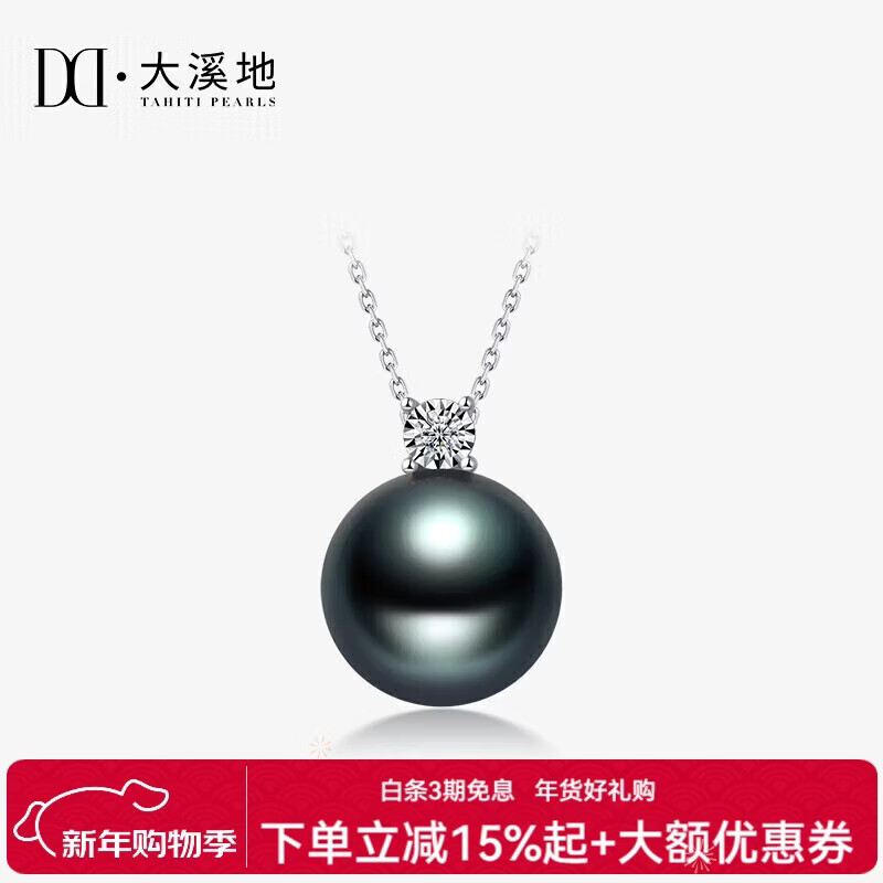 大溪地王妃款珍珠吊坠 10-11mm18K金莫桑钻石珍珠项链新年礼物送女生