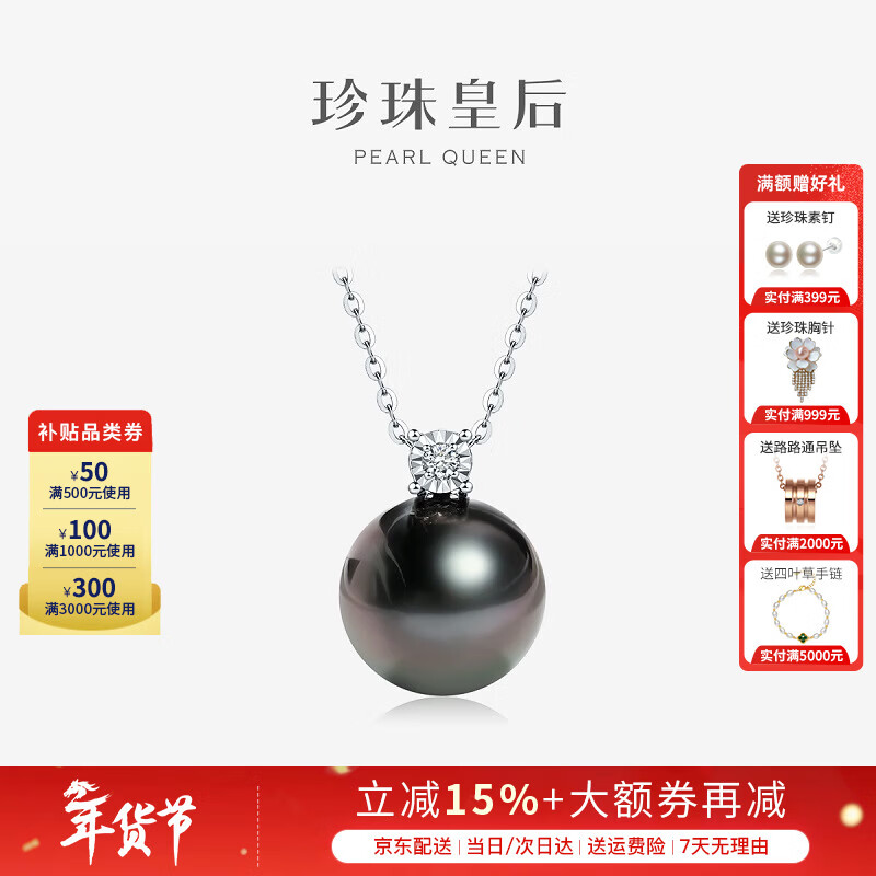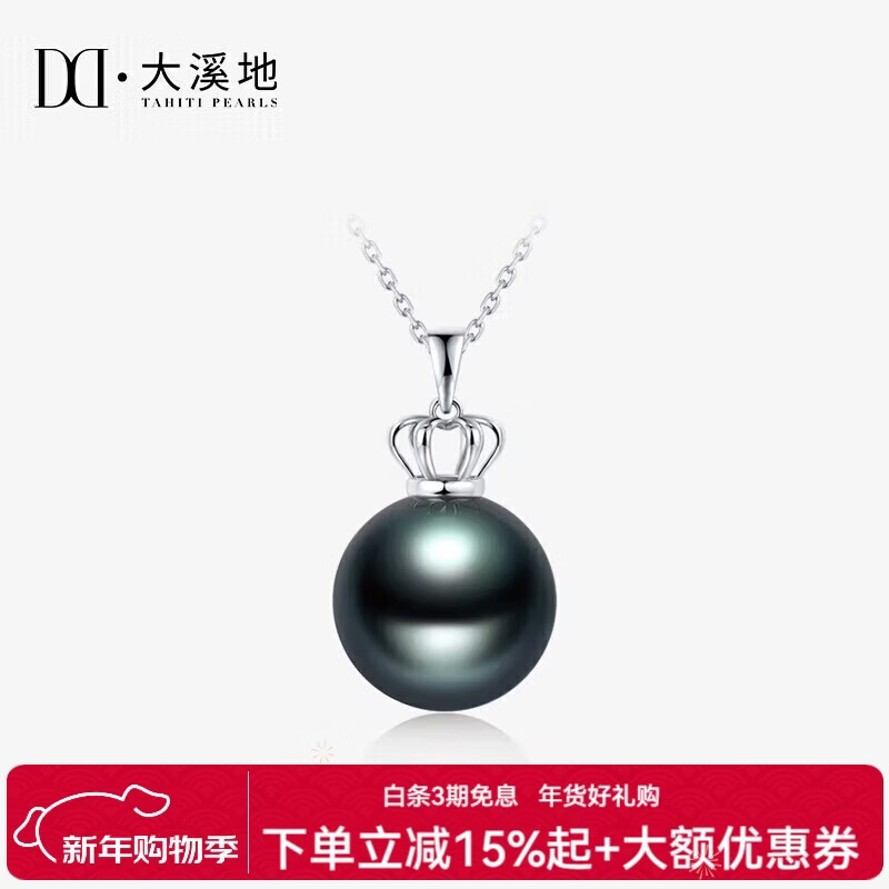 珍珠皇后18K金大溪地黑珍珠吊坠 正圆海水珍珠项链生日礼物送女朋友
