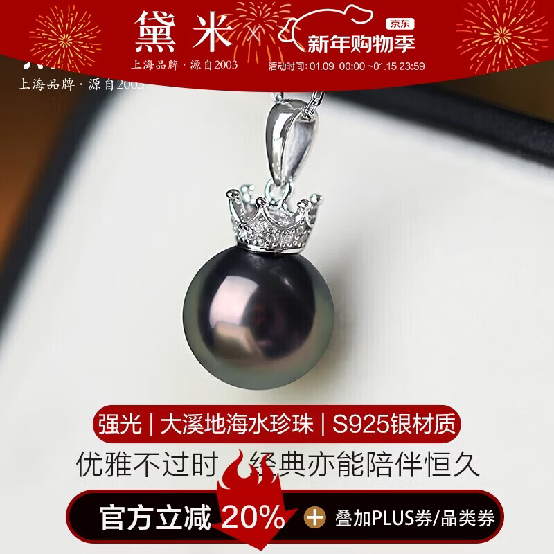 黛米9-10mm大溪地海水黑珍珠项链吊坠女S925银新年礼物送女友老婆