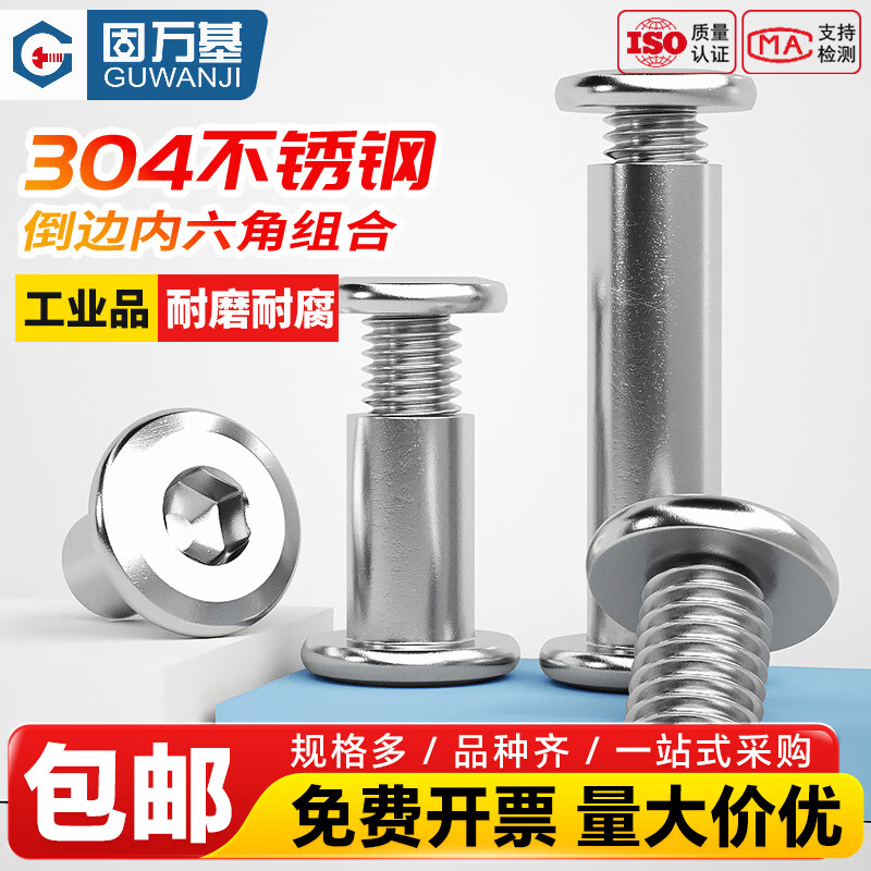 固万基(GUWANJI)304不锈钢倒边内六角对锁螺栓螺母家具连接夹板螺丝M2-M10 M2x4杆径3[40套]