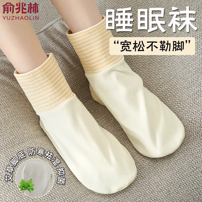 俞兆林(YUZHAOLIN)2双睡觉袜子女双面德绒艾草底秋冬季空调地板大码防寒祛湿脚套