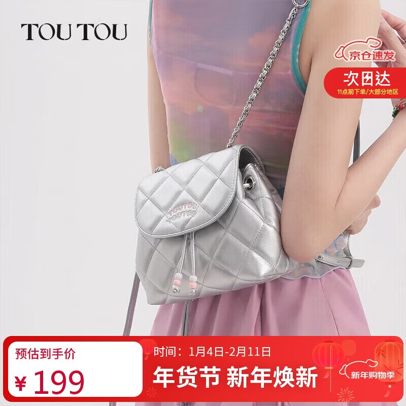toutou女款女双肩包小香风菱格送老婆背包女送女朋友新年马年礼物