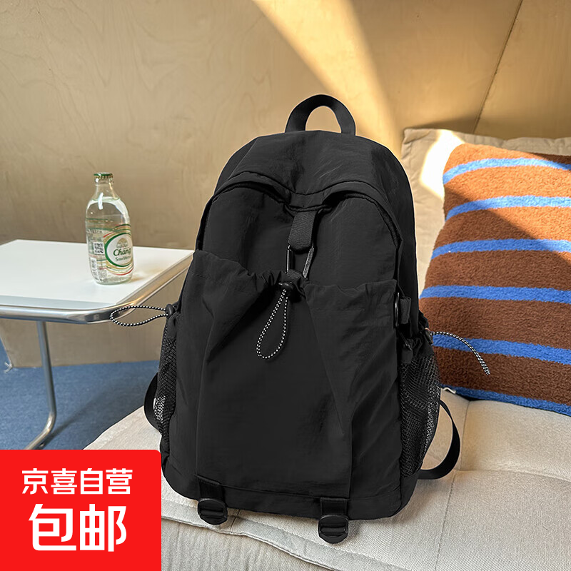 轻便简约女双肩包大容量百搭防水耐磨年轻便携旅行纯色背包减负款 黑色