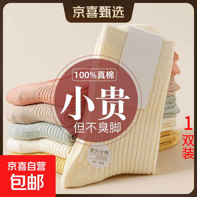 新疆棉袜子女士抽条春秋厚款中筒袜吸汗防臭100%纯棉双针耐磨女袜 女双针长袜【颜色随机】 1双 均码