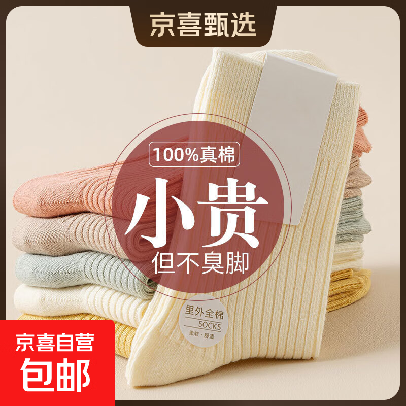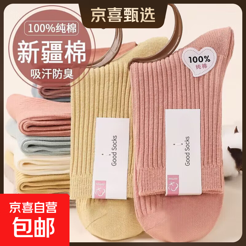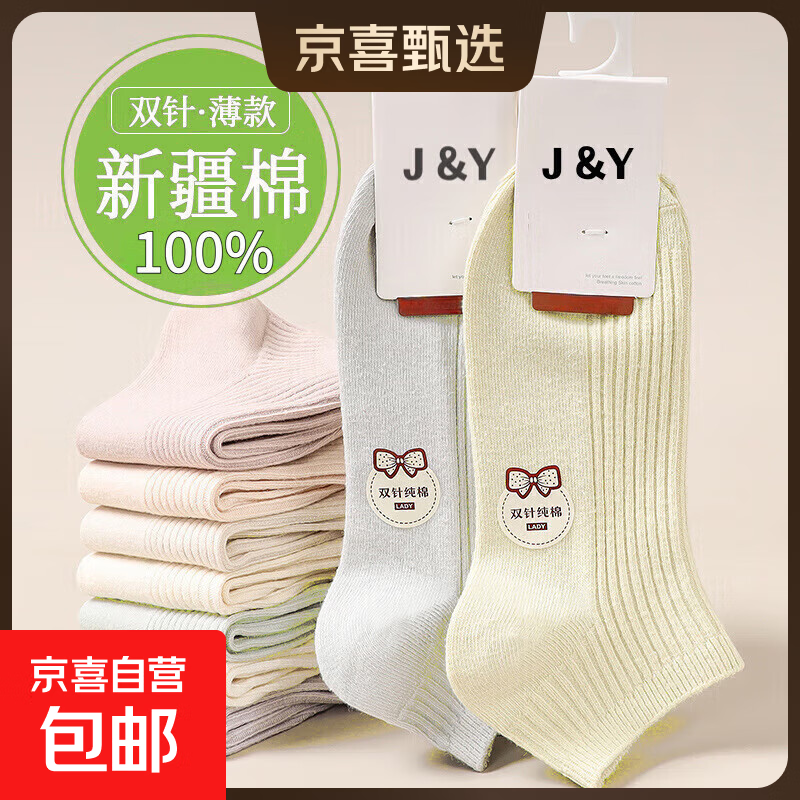 京东京造【新疆棉】精梳棉休闲双针抗菌女双针短袜4双基础色