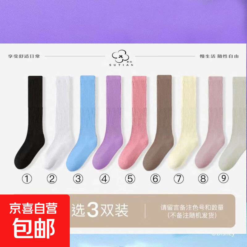 【100%棉】袜子女双针纯棉中筒长袜纯色秋冬加厚保暖吸汗透气防臭 女双针长袜彩色1双