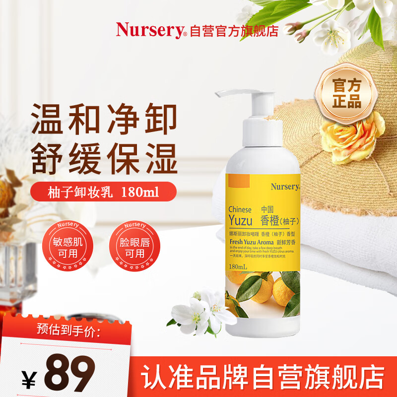 娜斯丽(Nursery)原装进口柚子卸妆乳180ml眼唇温和敏感肌清洁卸妆新年
