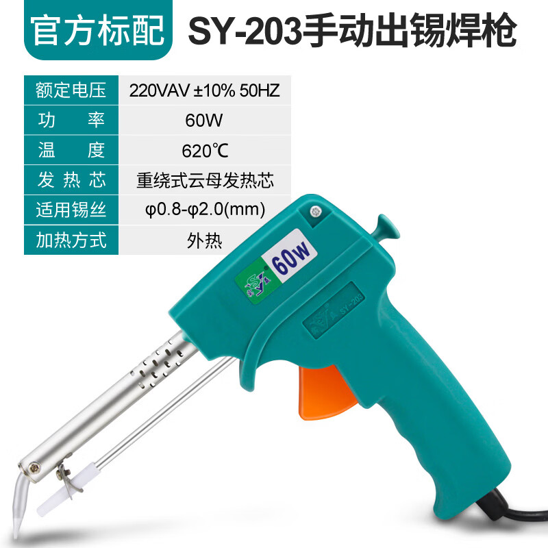 实益SY203手动出锡焊接枪外热式60w自动出锡电烙铁枪形洛铁电焊笔套装 60W标配