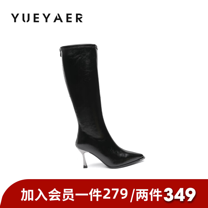 月芽儿2025年新款秋冬百搭尖头长筒靴高跟高筒靴显瘦时尚长筒靴子 绒里黑色01T 38