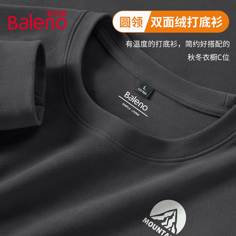 班尼路(Baleno)2025新款7A级抗菌秋冬季双面绒圆领双面绒男装保暖百搭款打底衫 【双面绒】-中灰#纯色 XL