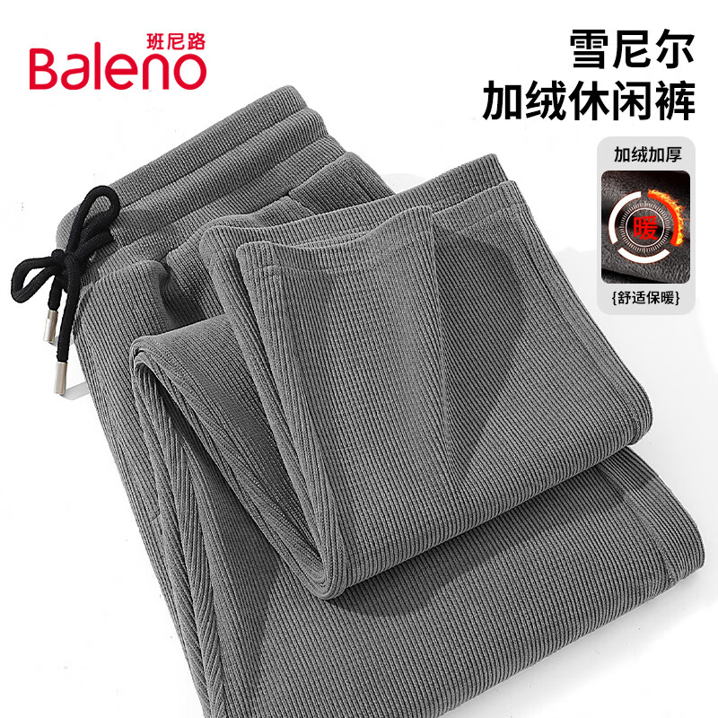 班尼路(Baleno)2025新款雪尼尔重磅加绒直脚休闲阔腿裤男挺阔垂顺冬季百搭直筒裤 【雪尼尔】- 中灰#纯色 XL