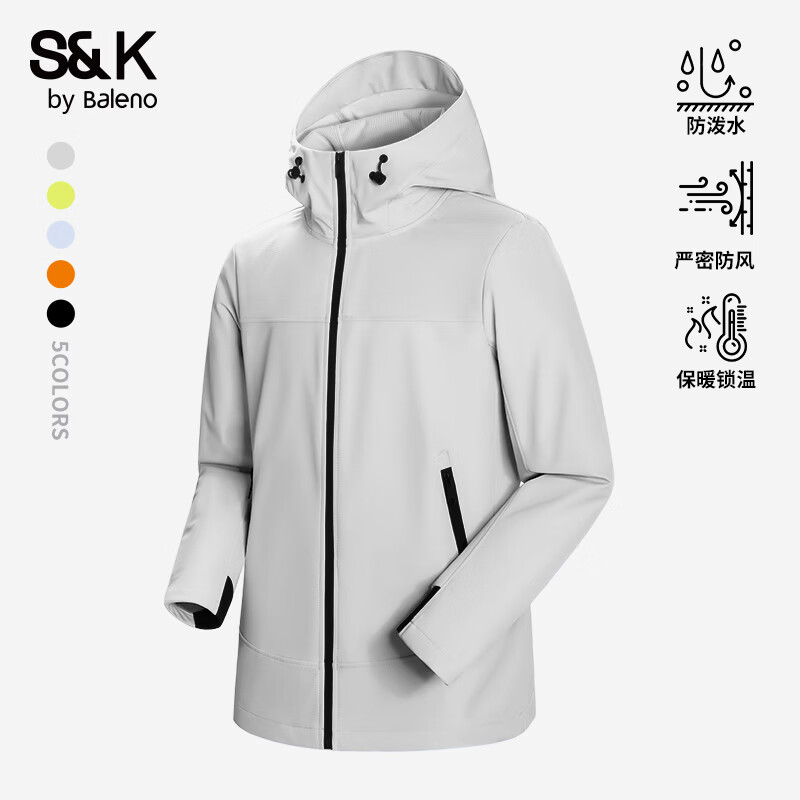 班尼路S&K系列秋冬季冲锋夹克男士舒适透气纯色系户外旅行三效合一外套 【防风性】-浅灰#纯色 2XL