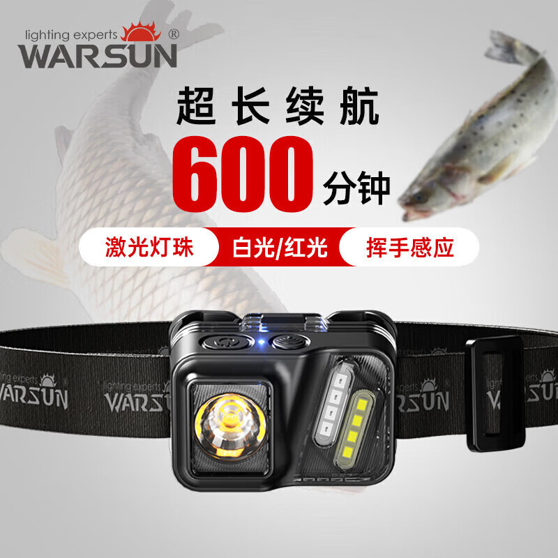 沃尔森斜杠感应头灯强光夜钓钓鱼充电户外超亮工作灯超轻小号型超长续航