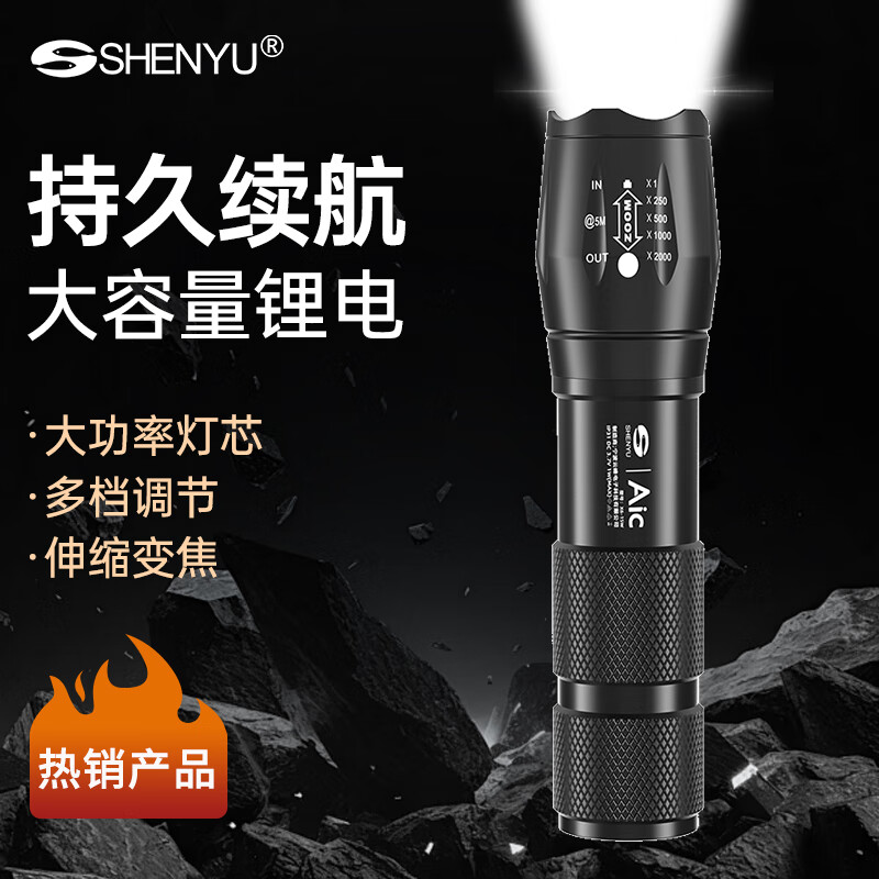 SHENYU手电筒强光超亮充电户外远射便携超长续航大容量家用工作灯 【爆亮】持久续航-合金机身