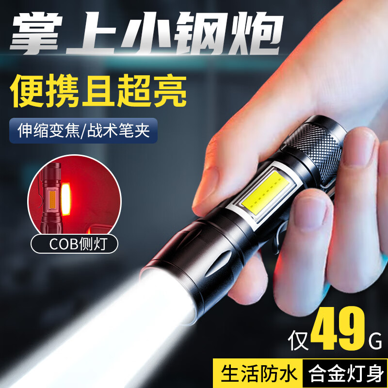 SHENYU手电筒强光可充电家用应急户外超亮远射小型便携工作灯带COB侧灯 【旗舰款】带侧灯-防水防摔