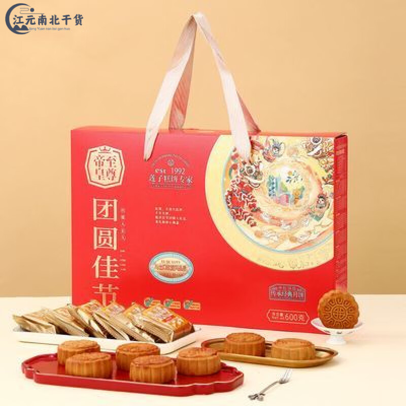 红允帝皇团圆佳节月饼礼盒600克礼盒装方式手作老味道广式月饼 帝皇团圆佳节月饼礼盒600克礼盒