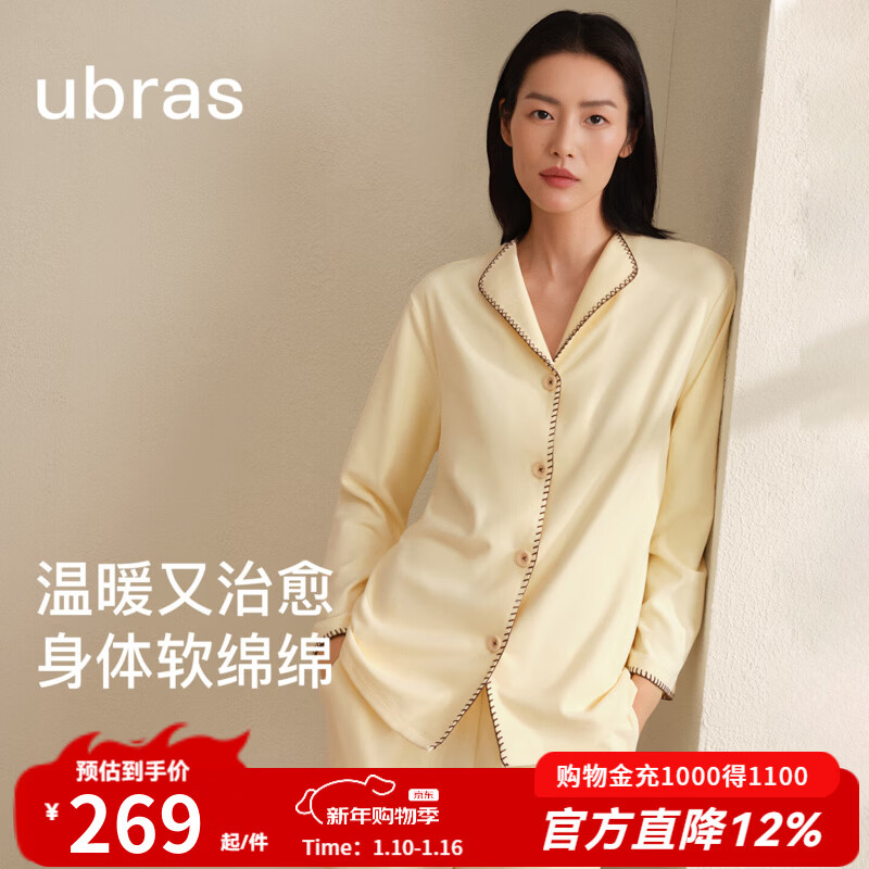 ubras云棉草本经典开襟软棉棉内衣家居服女士情侣睡衣套装奶油布丁S