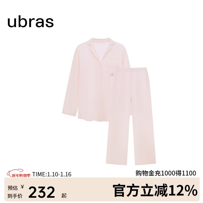 ubras云棉草本经典开襟软棉棉内衣家居服女士情侣睡衣套装浅桃粉色M