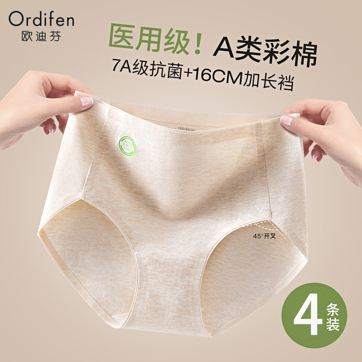 欧迪芬女士内裤女高腰A类原棉7A抑菌纯棉加长裆医用级彩棉高开叉三角裤