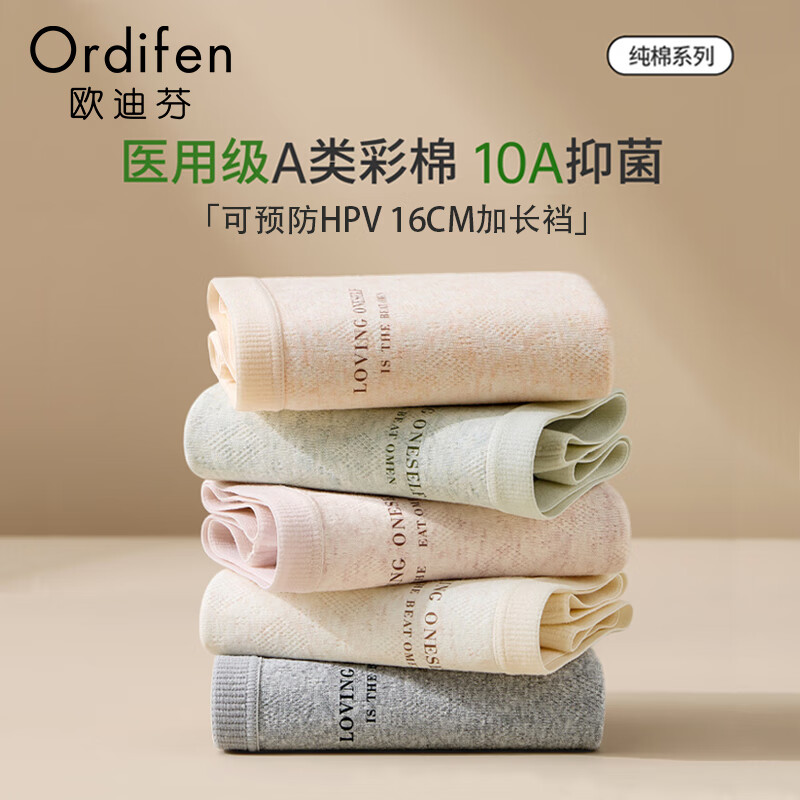 Ordifen女士内裤女【预防HPV】纯棉抑菌加长裆A类彩棉透气包臀三角短裤
