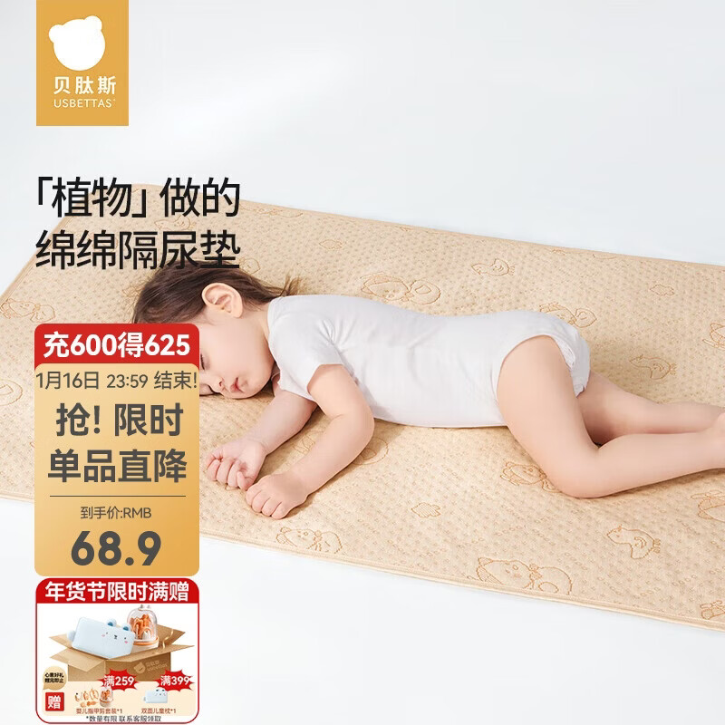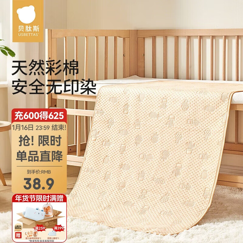 贝肽斯婴儿隔尿垫天然彩棉防水可水洗姨妈垫生理期床垫植物派对65x120cm