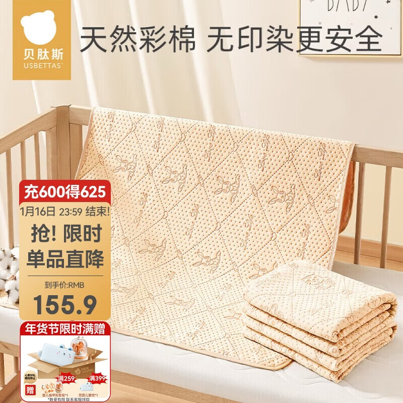 贝肽斯婴儿隔尿垫天然彩棉防水可水洗姨妈垫生理期床垫 瑞兔180x200cm