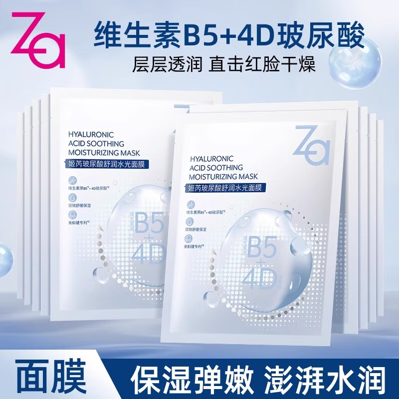 姬芮Za姬芮玻尿酸面膜补水保湿女男含b5修护成分舒缓敏感泛红熬夜 5片 买一盒送一盒到手10片