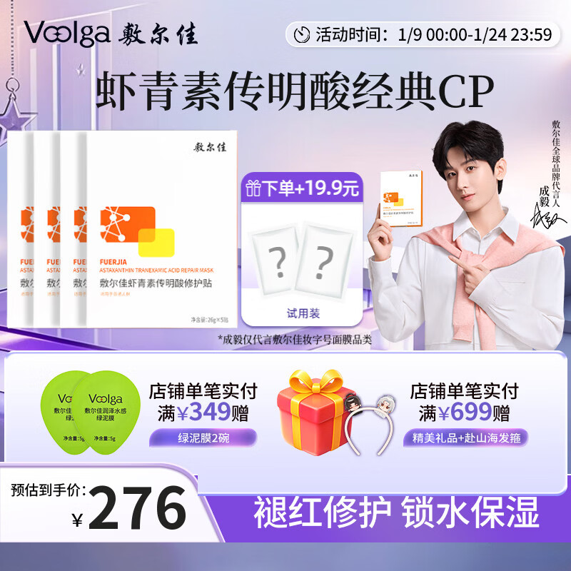 敷尔佳【成毅同款】虾青素传明酸修护贴 敷尔佳灯泡膜 补水面膜 美妆 四盒